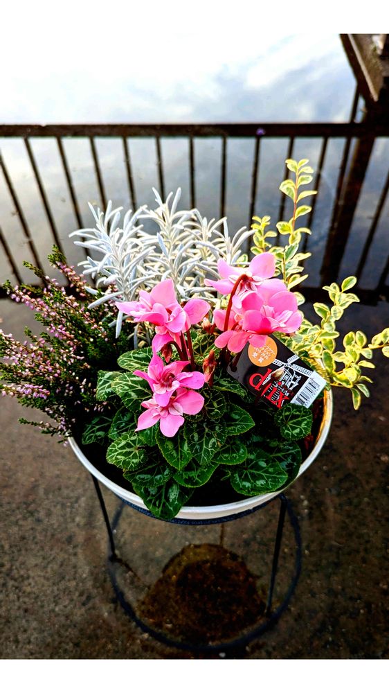 ガーデンシクラメン主役の寄せ植えを作りたくて、SNOOPYさんのこの寄せ植えの配置とか参考にしてたら、思いのほか花材まで寄っちゃって、パクったみたいになっちゃいました〜😅笑