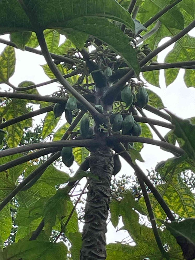 久しぶりに公園に来たらパパイヤに実が付いていた