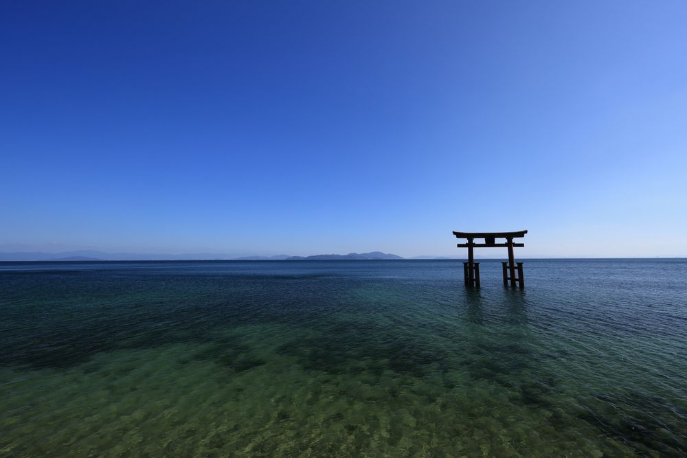 琵琶湖に佇む大鳥居の姿は、とても神秘的です。