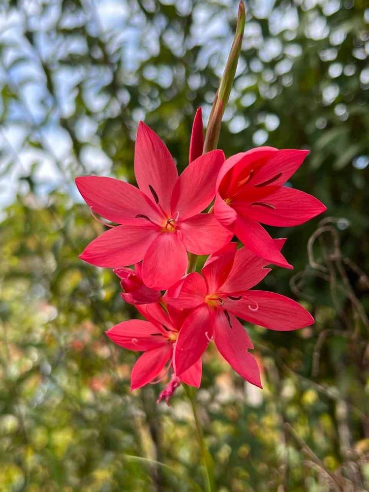 葉の形や花の付き方はグラジオラスに似ているけれど お花はイキシアを大きくした感じ