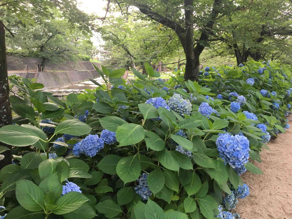 川沿い咲き誇る紫陽花に癒された✨