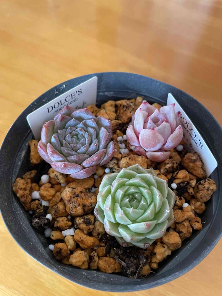 昨日の花友フェスタで家内がレジ待ちで1時間あり退屈してたらしく多肉ガチャを回したらこの子達が出てきた〜って笑顔☺️植え付けは私に回ってくる〜😂