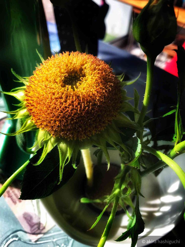 花びらをなくした向日葵🌻と薔薇の蕾。