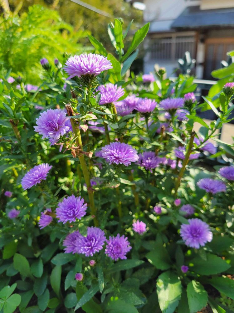 夏の終わりに枯れかけてカットした宿根アスターの、脇芽が伸びて花が咲きました🎵
