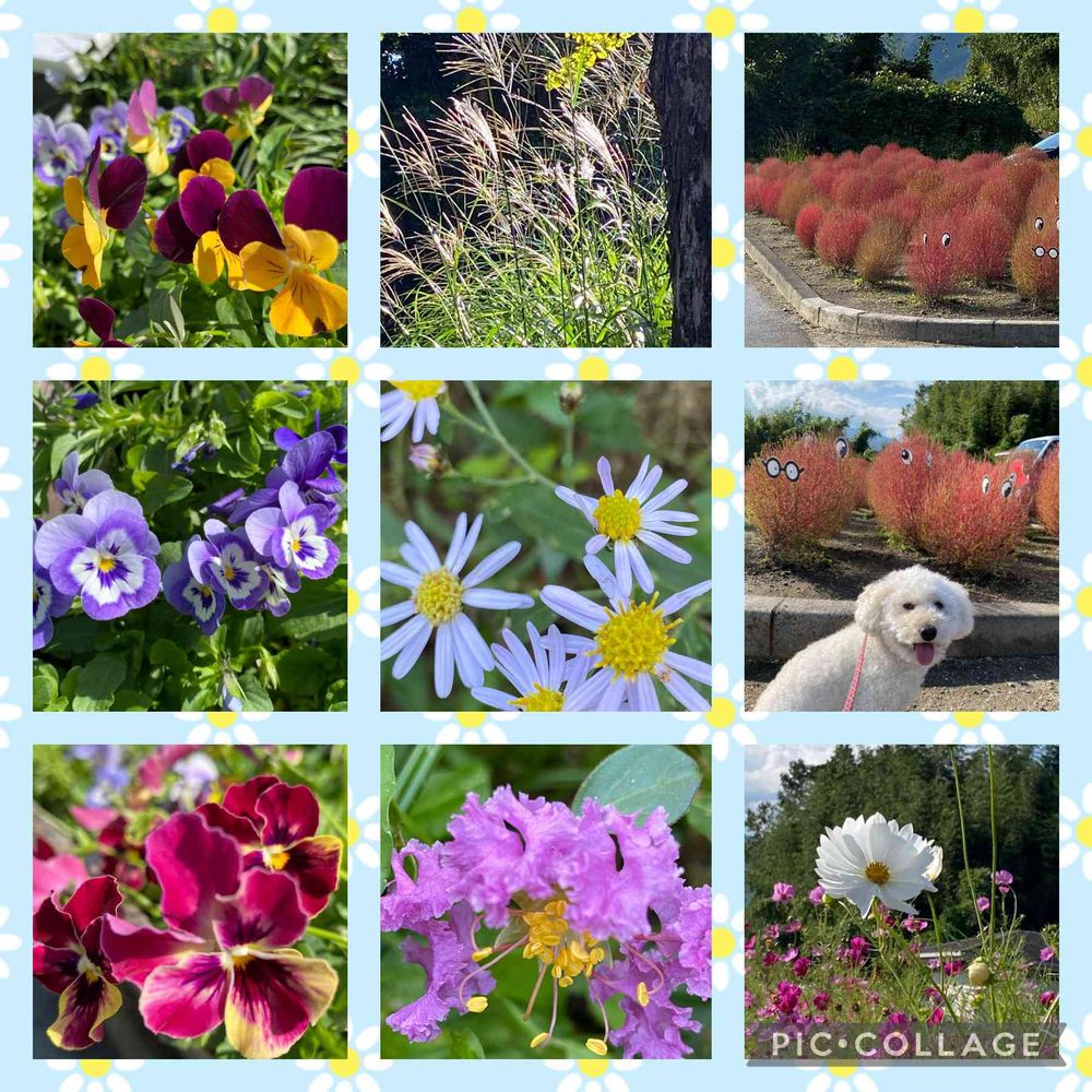 りゅうちゃん🐶涼しくなって綺麗なお花いっぱいでお散歩楽しいね💕︎
