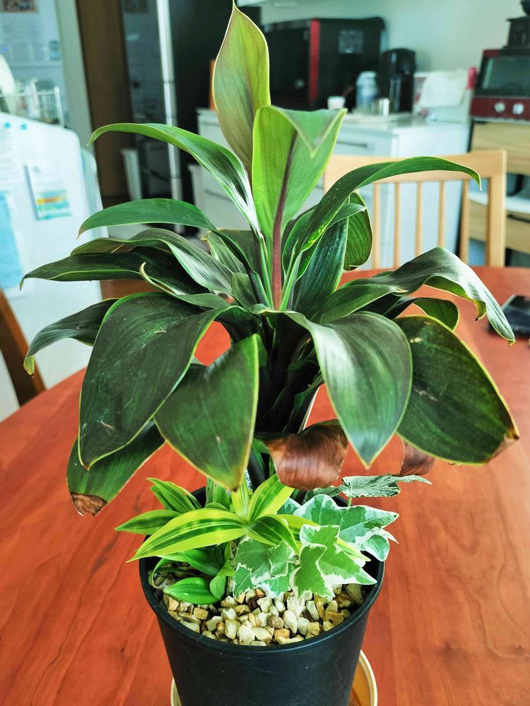 おまけで頂いたコルジリネコンパクタの挿し芽、しっかり根が出て育っているので寄せ植えにしたら思った以上に可愛く出来ました。家族にも好評でした。