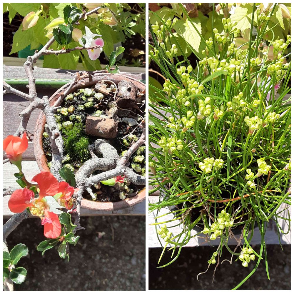 さん糸ラッキョウのお花が咲き始めました🎵長寿梅も糸ラッキョウも盆栽用でとても小さなお花です🌼🎶