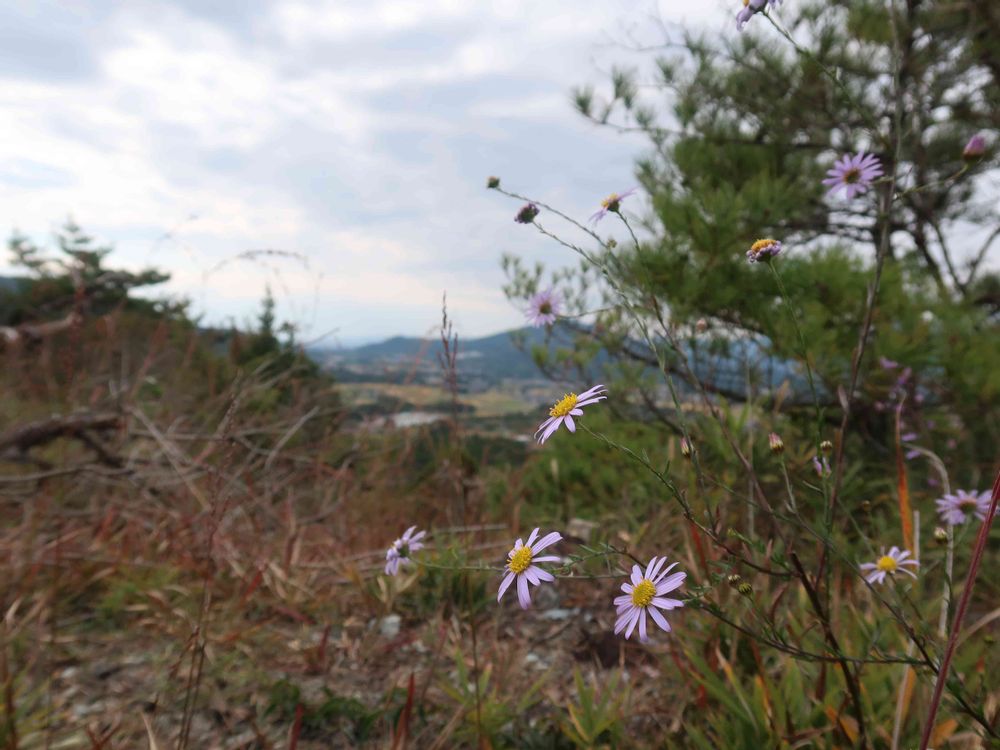 蛇紋岩地帯の痩せ山で咲くヤナギノギク。この時期、薄紫色の花が点々と咲いている。😄✌️🐶