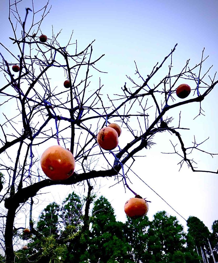 📝この柿は母方の従兄弟の中庭に成っている「富有柿」デス🐶