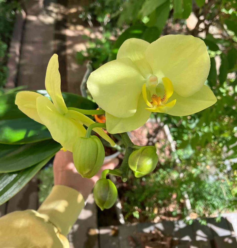 ミディ胡蝶蘭のモニター🌸ダメかと思ってたら、当選してた♡黄色のお花でした💛たまたま今日は黄色の服着てた😊