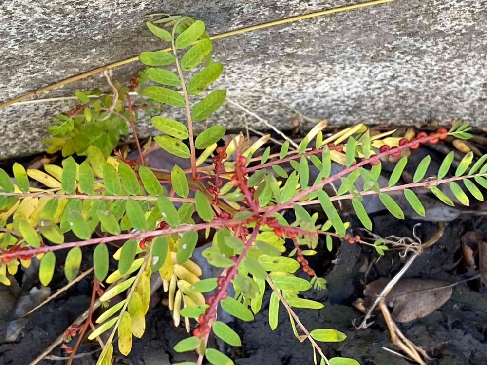 小枝は羽状複葉のように見える。また小枝の葉は就眠運動し、夜には2列が上側へ閉じる。その点でもマメ科植物の複葉に似ている。