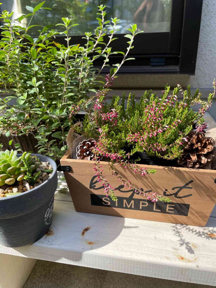 植える鉢がないので間に合わせの木のボックスで秋らしくアレンジ
