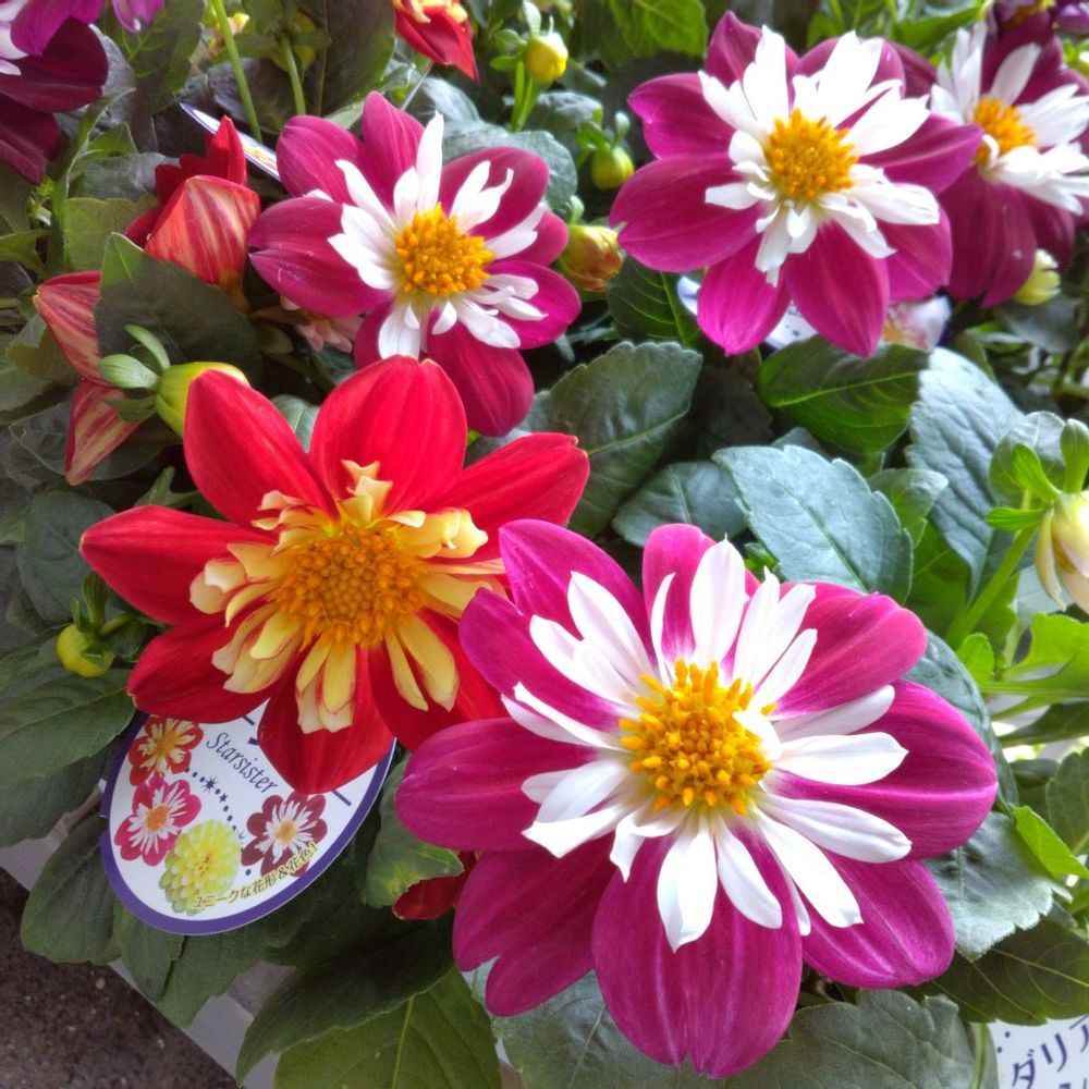 ホームワイド新下関さんの小さな庭,ダリアスターシスターレッド&イエロー,ダリアスターシスターローズ&ホワイトの投稿画像