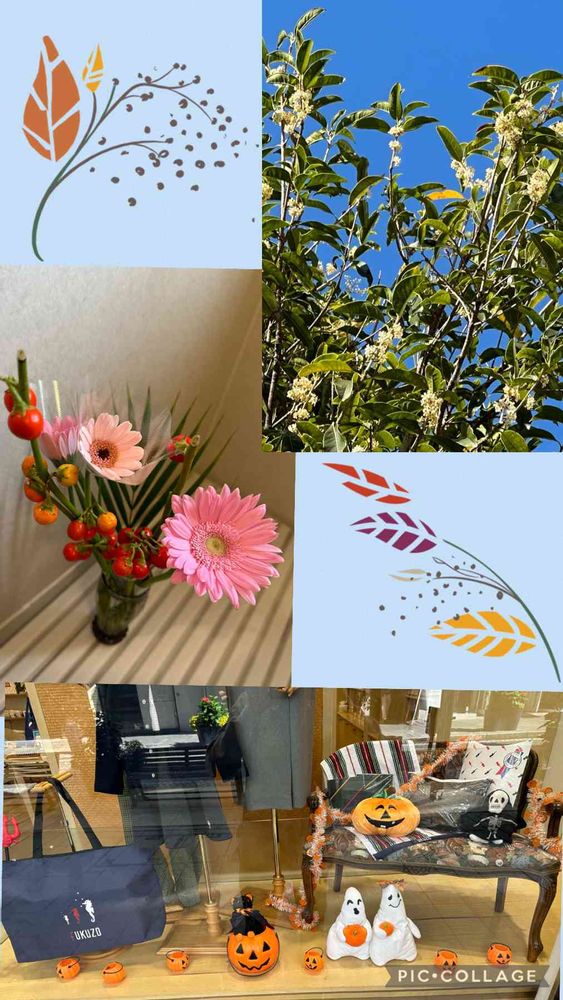 ちよこさんのガーベラ,銀木犀(ギンモクセイ),元町フクゾーのハロウィン飾りつけの投稿画像