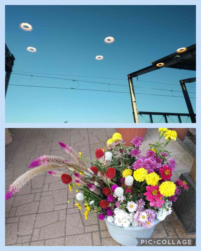 先程、16時30分頃です。明日の老人会で秋の法要に飾る花を、お多福ガ―デンからカット✂️してきました💓短めなので、明日上手く飾って欲しいのでこのままもたせます😊。