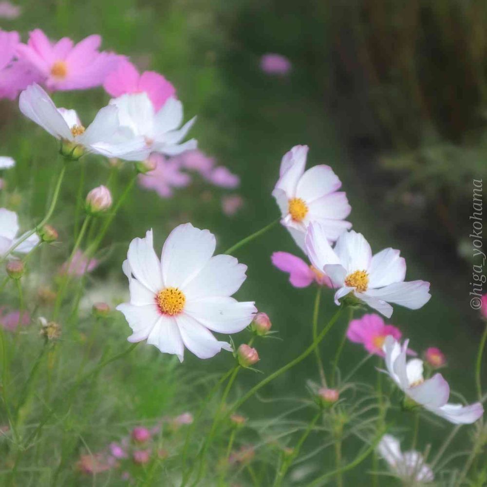 白とピンクののコスモスともきれいな組み合わせですね~🩷🤍🎶💞