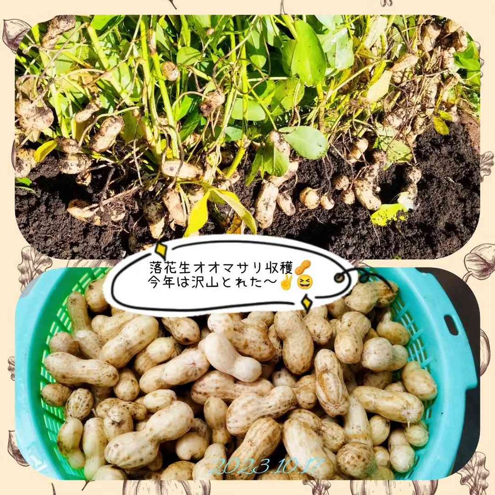 今日は晴れたので、夫と落花生オオマサリを二株掘りました。