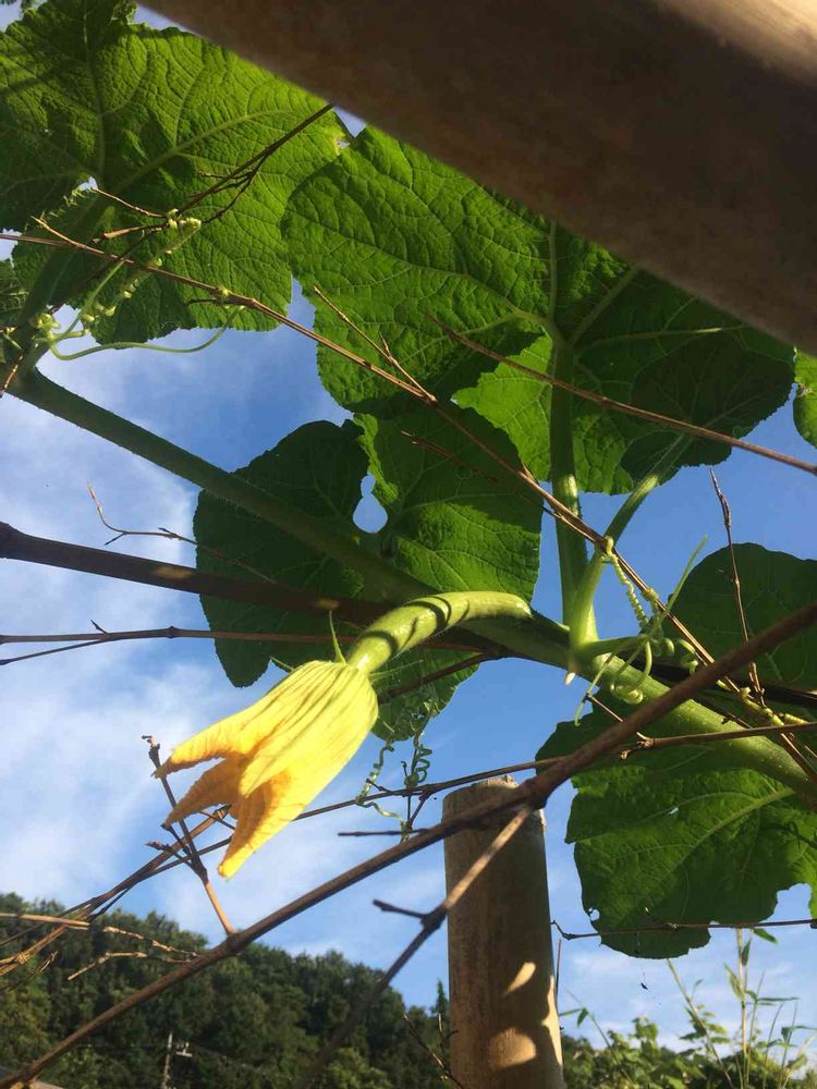 カボチャ🎃が実ってきました。今年は長いタイプも育ててます。