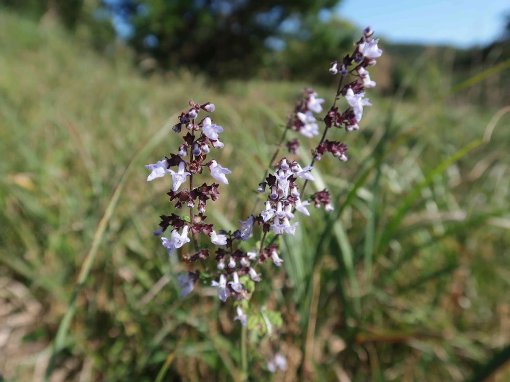 地元の低山で咲いているヤマハッカ。丘程度の場所、一面に秋の山野草が広がっています。🐶