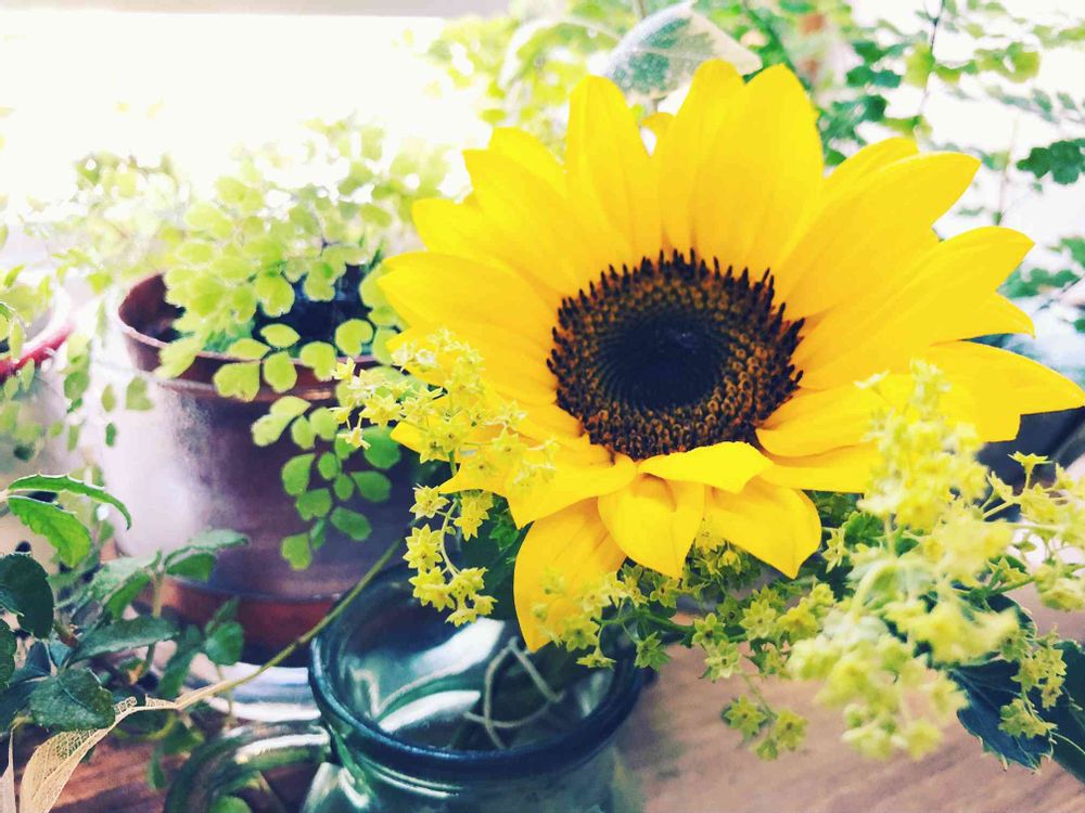 部屋,アジアンタム,ヒマワリの投稿画像