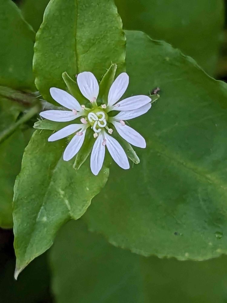 ウシハコベ 可愛い😍花ですね。中央の雌蕊でしょうか?面白い形ですね。😆