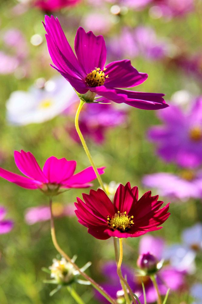 少し背の高い花があったので、背景にもやわらかなコスモスたちを入れながら撮りました
