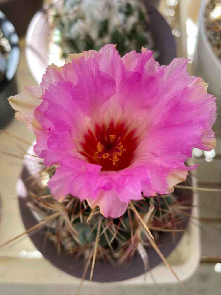 このトゲトゲの緑のボディから、こんなふわふわのお花が咲くって、面白いよね💝☺️