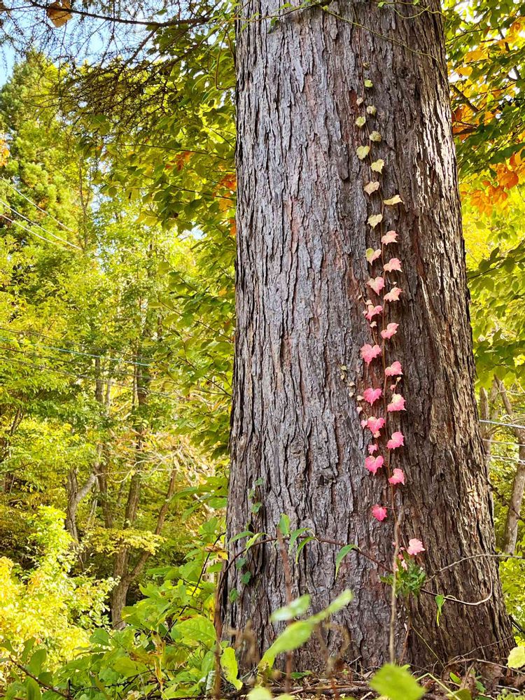 大きな木🌲の幹に綺麗~なgradationの蔦🍁🍁🍁