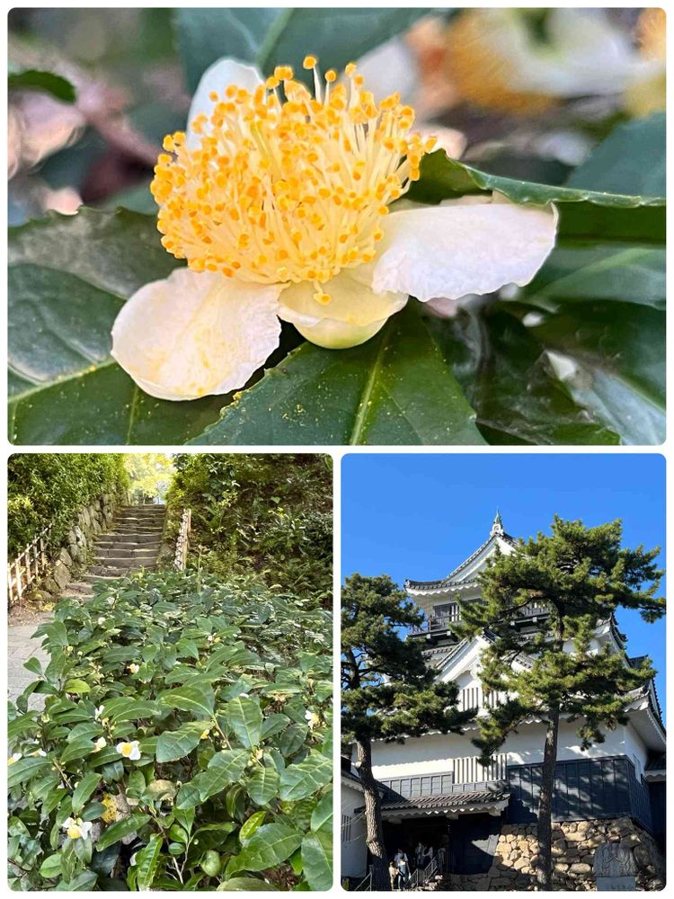 お城の生垣に茶の木は合う〜😆 泰平の世を築かれた徳川様に感謝です‼️