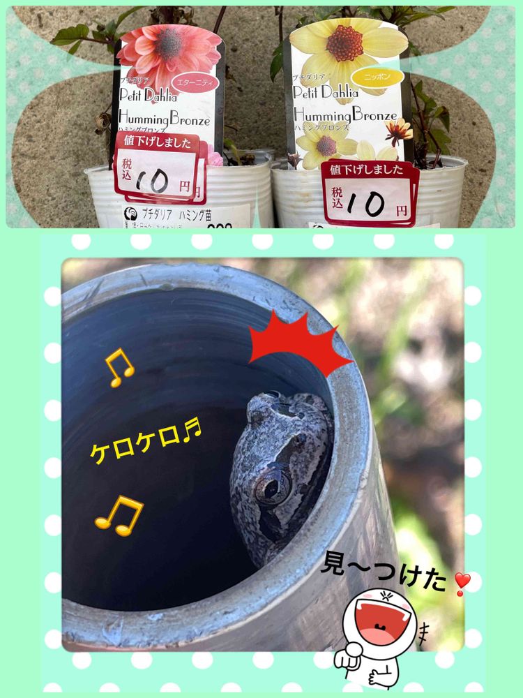 職場で花壇の手入れをしてたら〜ケロケロ🐸♬めちゃ大きく響いて〜どこで鳴いてるのかと思ったら〜見〜つけた❣️😆