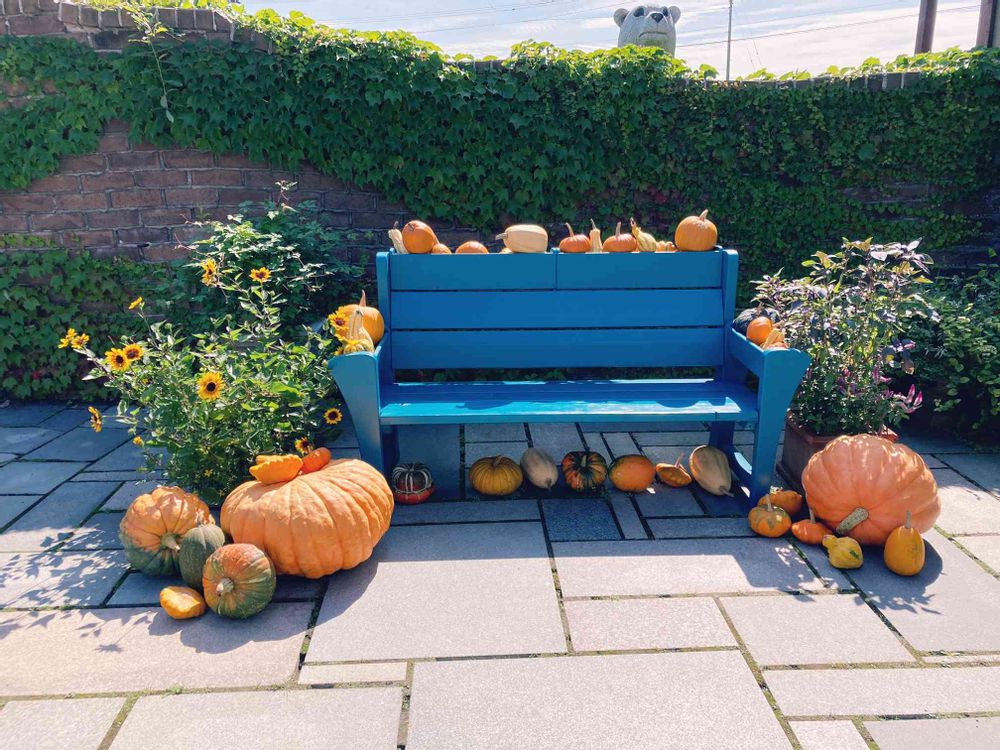 カボチャに囲まれて、ひと休み🪑