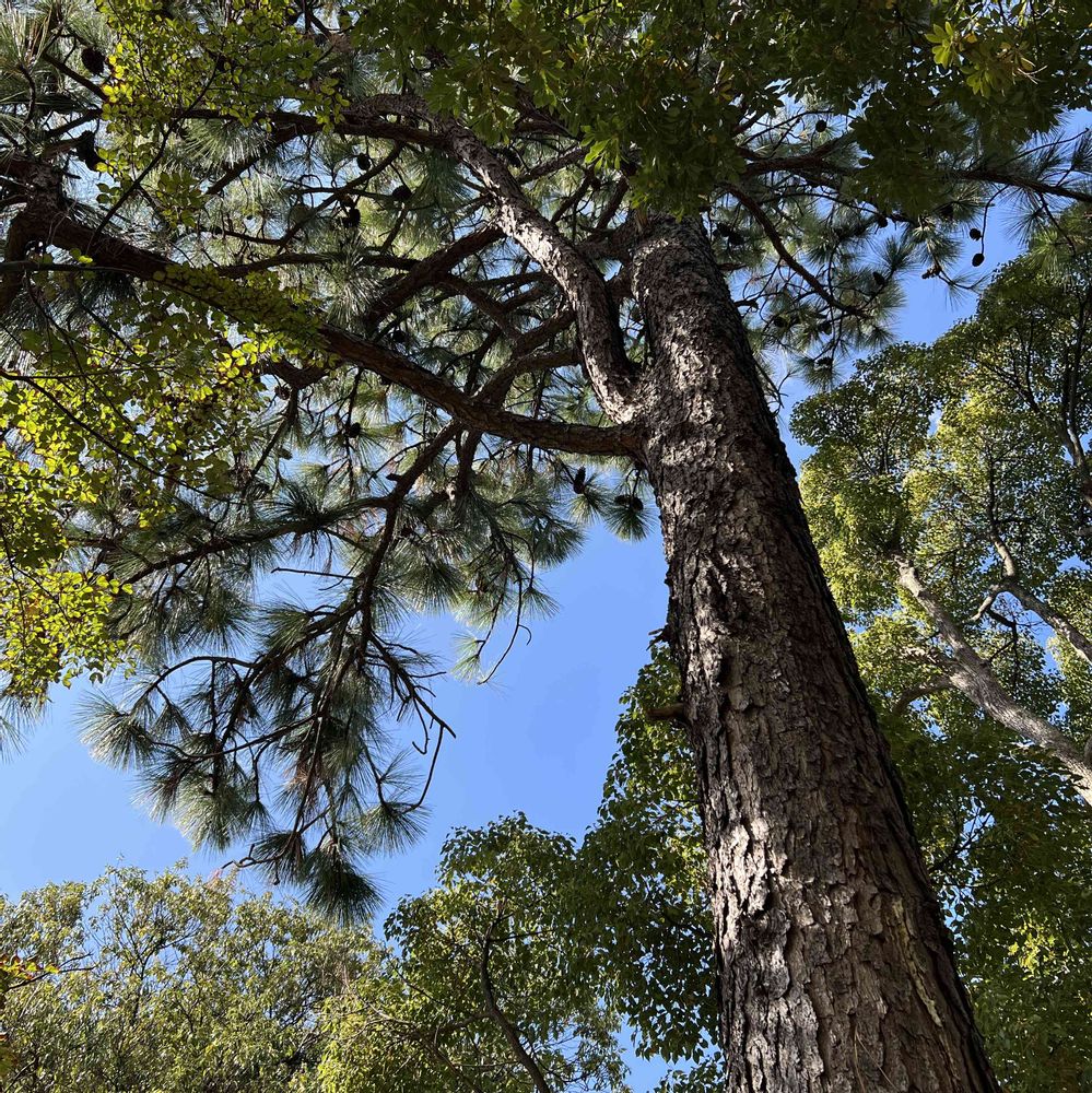 見上げてみたら、大きな松の実をつけていて尚ビックリ‼️