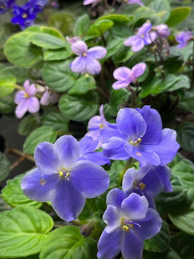 セントポーリア、今二輪、咲いています。確認できた花芽は5~6つ。次々咲いて賑やかに!さて、土変えるかな😄