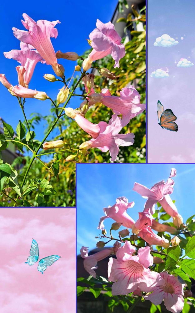 青空とピンクの花色、とても良く合いますね(*´︶`*)♡きれ〜い♪