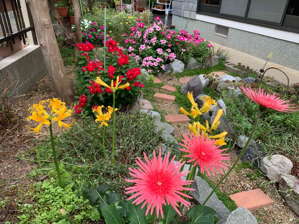 色とりどりの花盛りで可愛いお庭ですね❀.*・゚