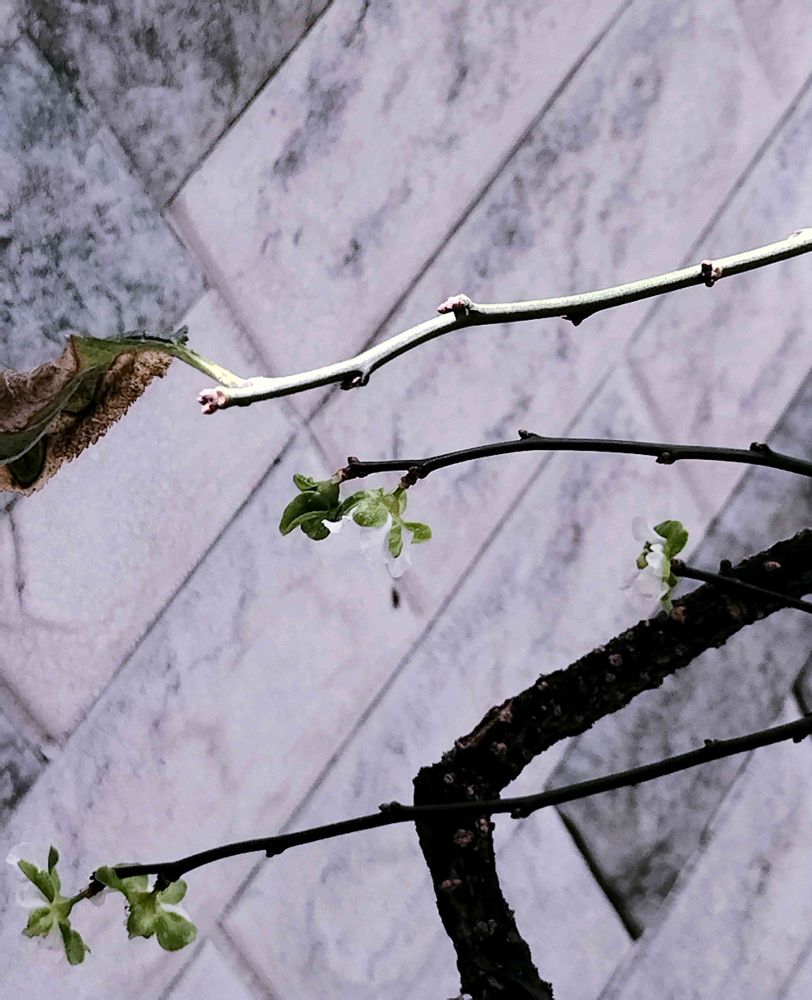 一ヶ月ほど前から季節外れの冬至梅の花が咲いてます。