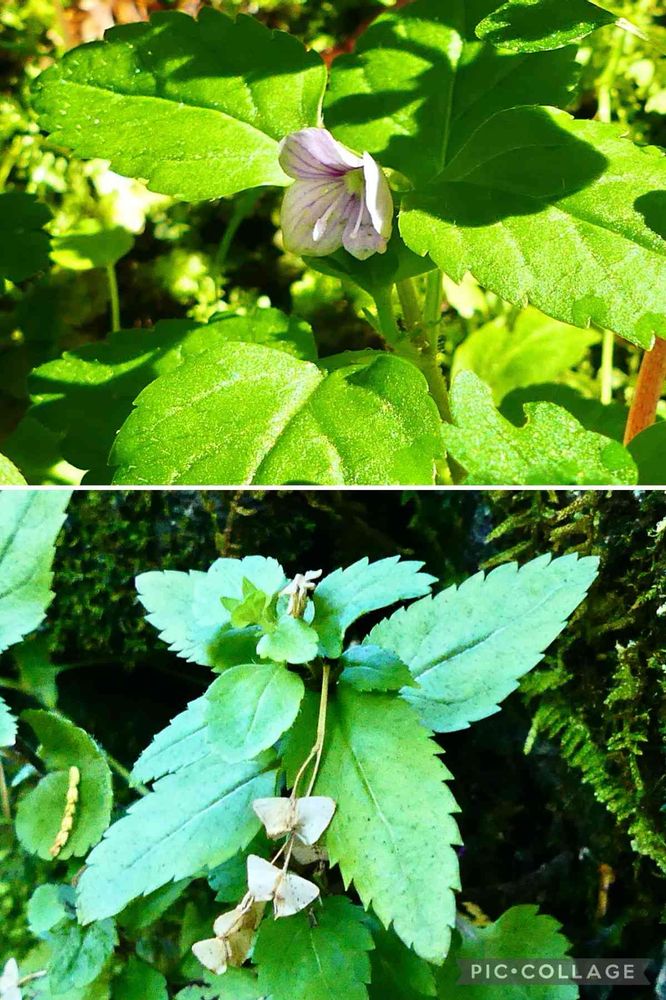 ⬇️は灯篭の根元にはえてた「クワガタソウ」、独特の鍬形の形をした果実がついてますねえ。
