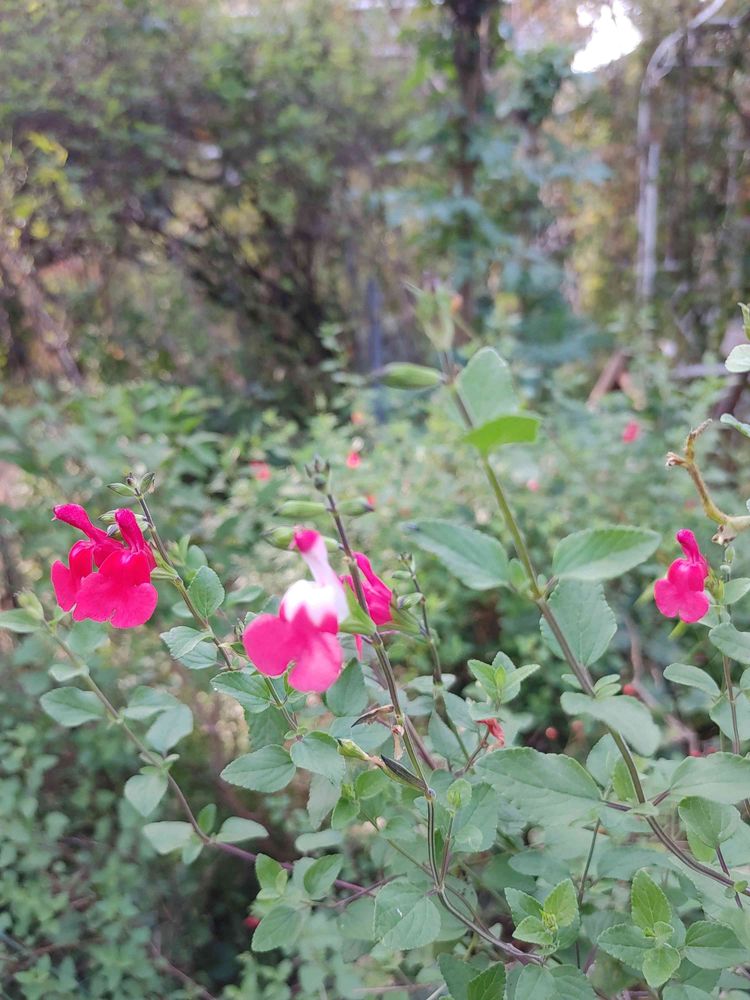 夏のルドベキアも花盛りの中、チェリーセージも咲いてきました