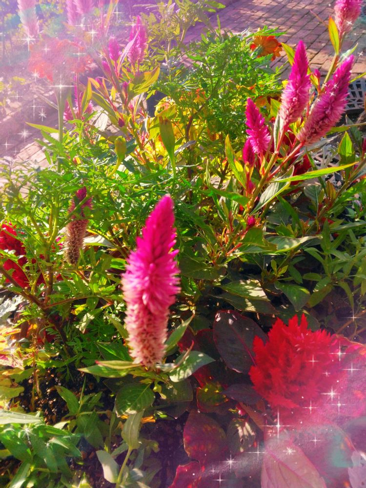 朝モヤ? モヤっとしたモフモフが爽やかですね✨ ケイトウのお花は、ピンクのカラーインクで染めたみたい💕