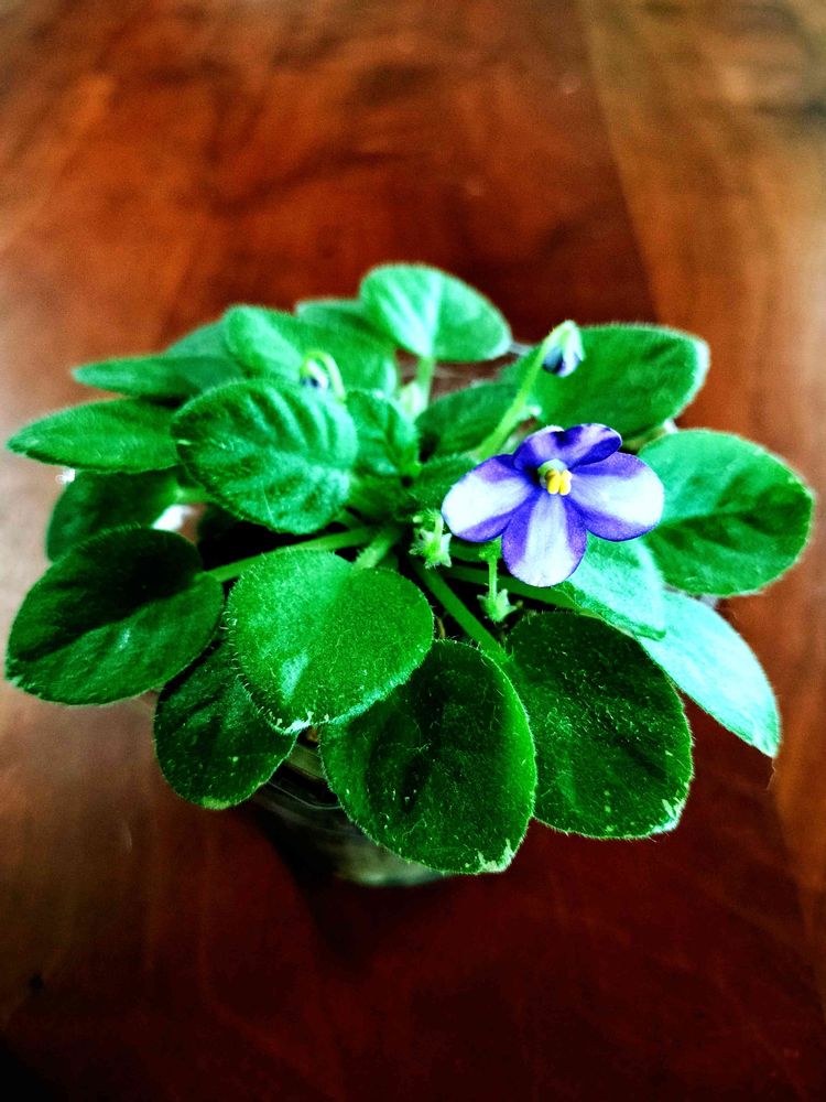 咲きました。夏前に購入したセントポーリア苗では一番乗りです。偉い。