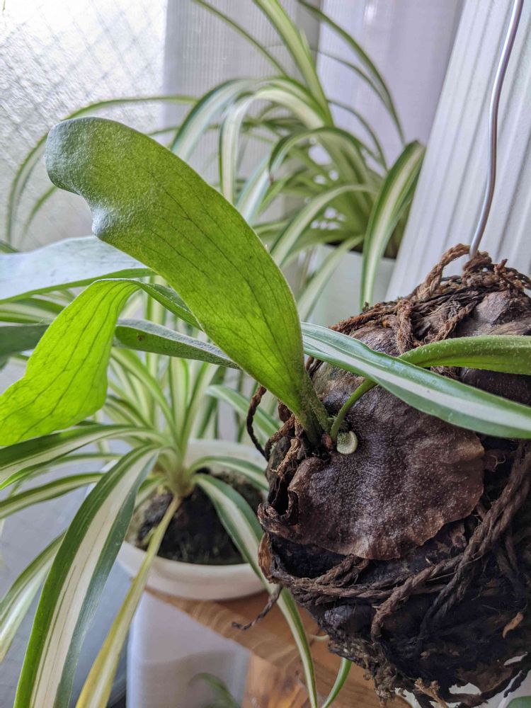 このビカクシダがうちに来てから、2枚目の貯水葉です。