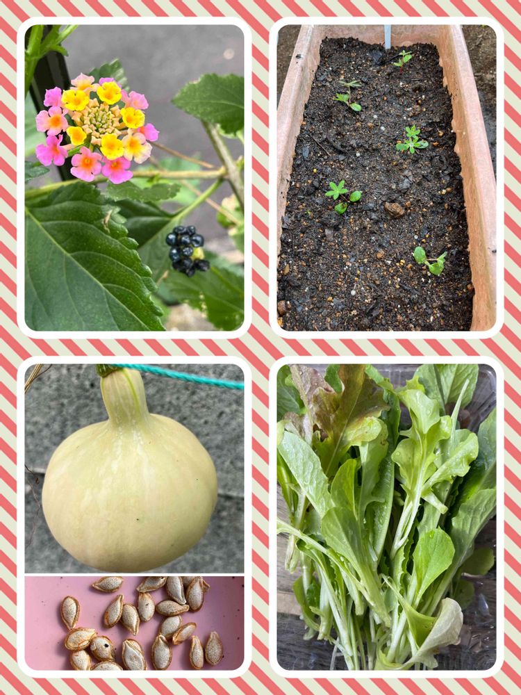 おはようございます。晴れ、22.7℃、9:20爽やか・ちょうどいい。ランタナ、花たくさん咲いてます。100均ルピナス、24日目、直根性なので深いプランターに苗植えしました。バターナッツカボチャ、三男から種採り、乾燥します、形が良く大きめの七男からは種採りできませんでした。レタスサラダミックス、30日目、間引きしました。😻😍🥰😋😸☺️