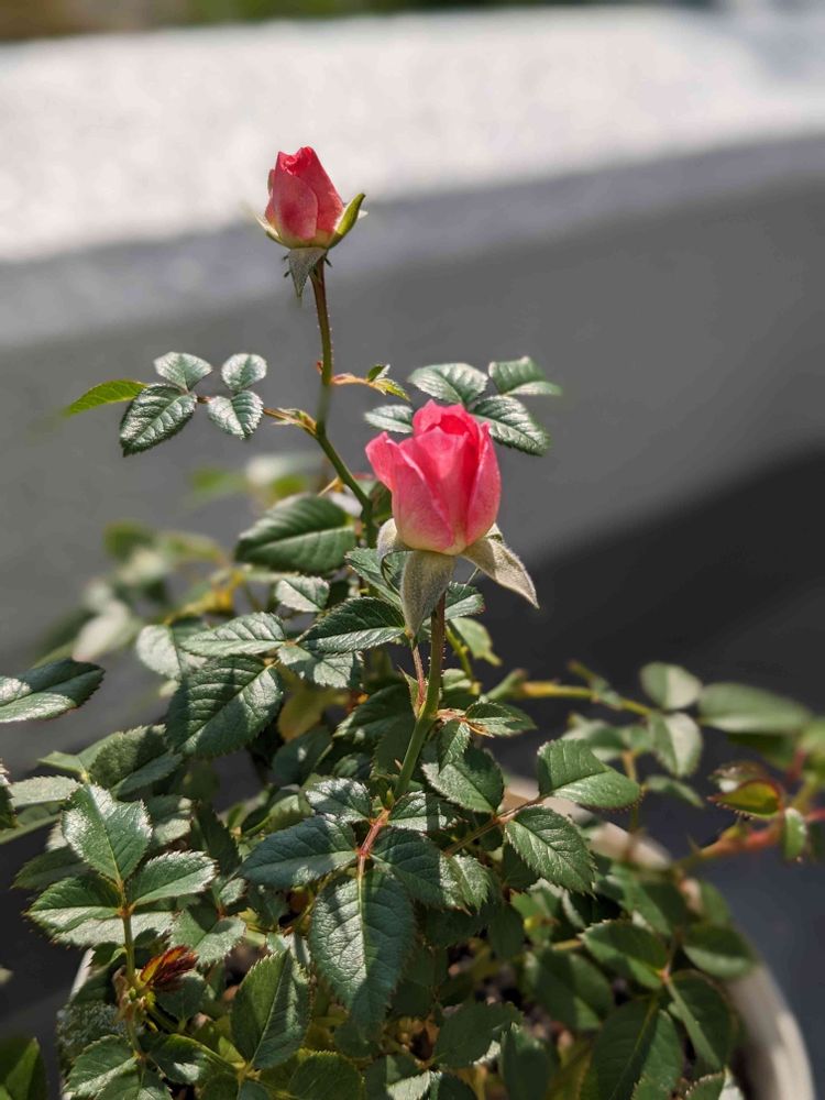 母に挿し木でもらったミニバラ、二年目になりました𓍯
