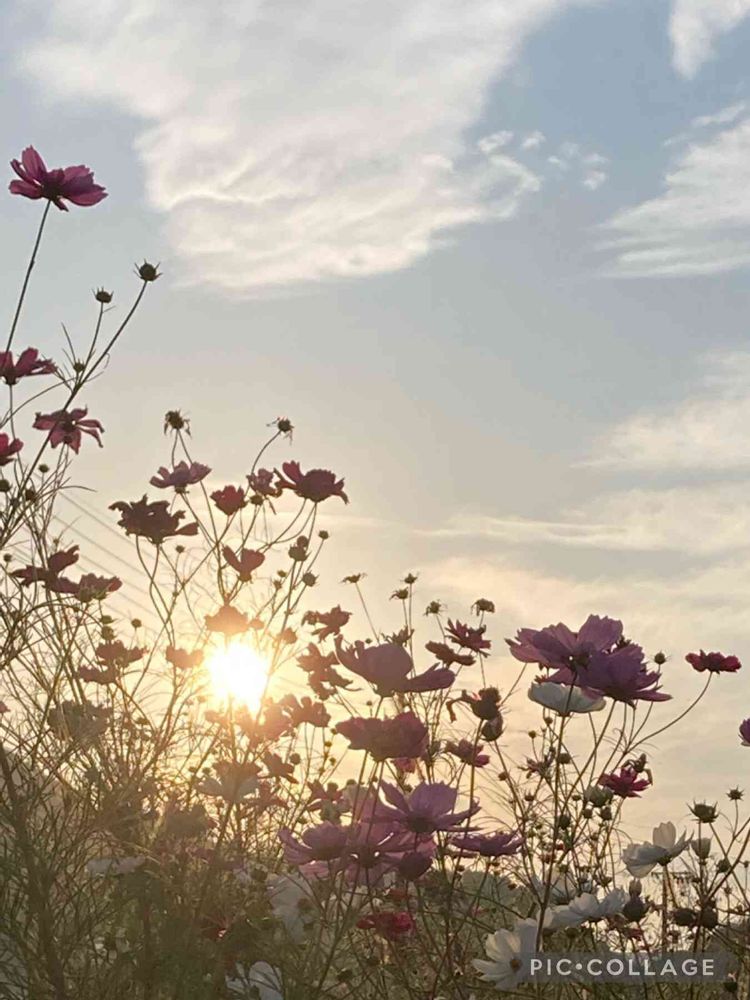 昨日の帰り道、陽の光がコスモスのカーテンで柔らかく感じました🌸✨✨