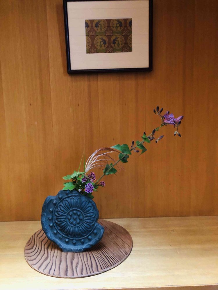 奇跡的に綺麗に残ったホトトギスを玄関に飾りました。