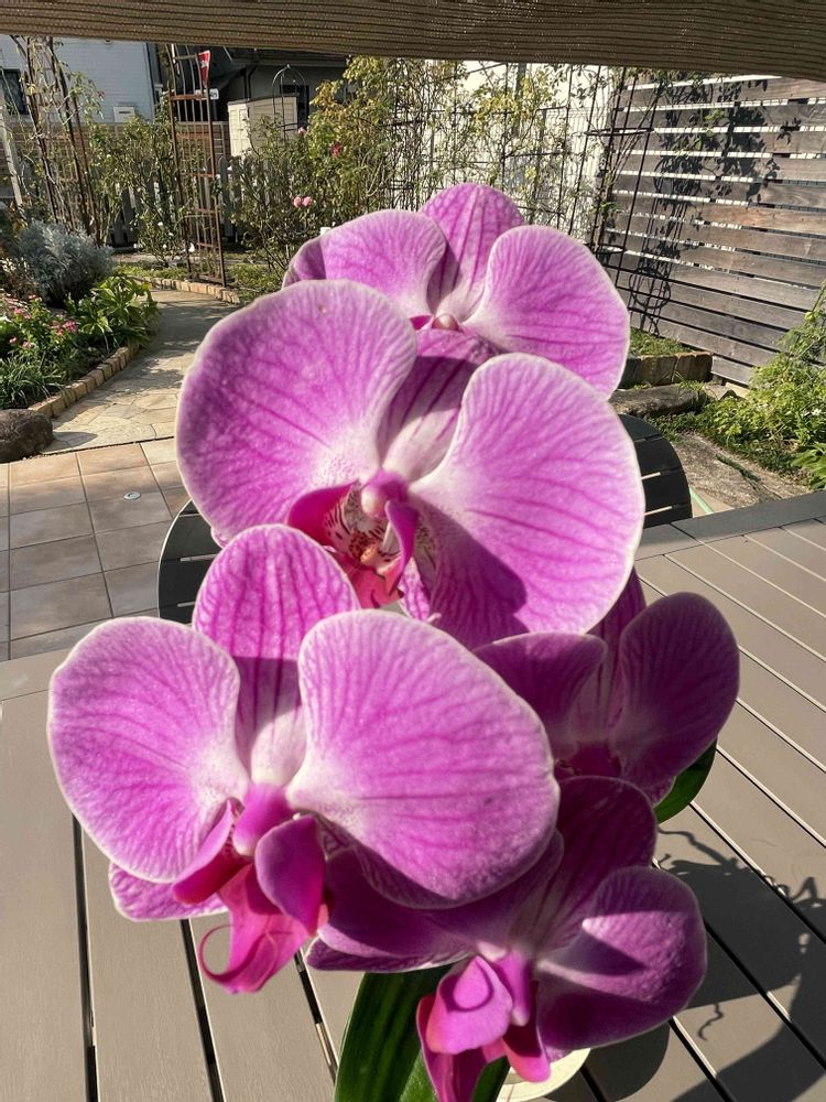 ミディ胡蝶蘭モニターのお花です。届いて2週間が経ちます。6つのお花の大きさが揃って来ました。届いた時よりひとまわり大きなお花になりました。