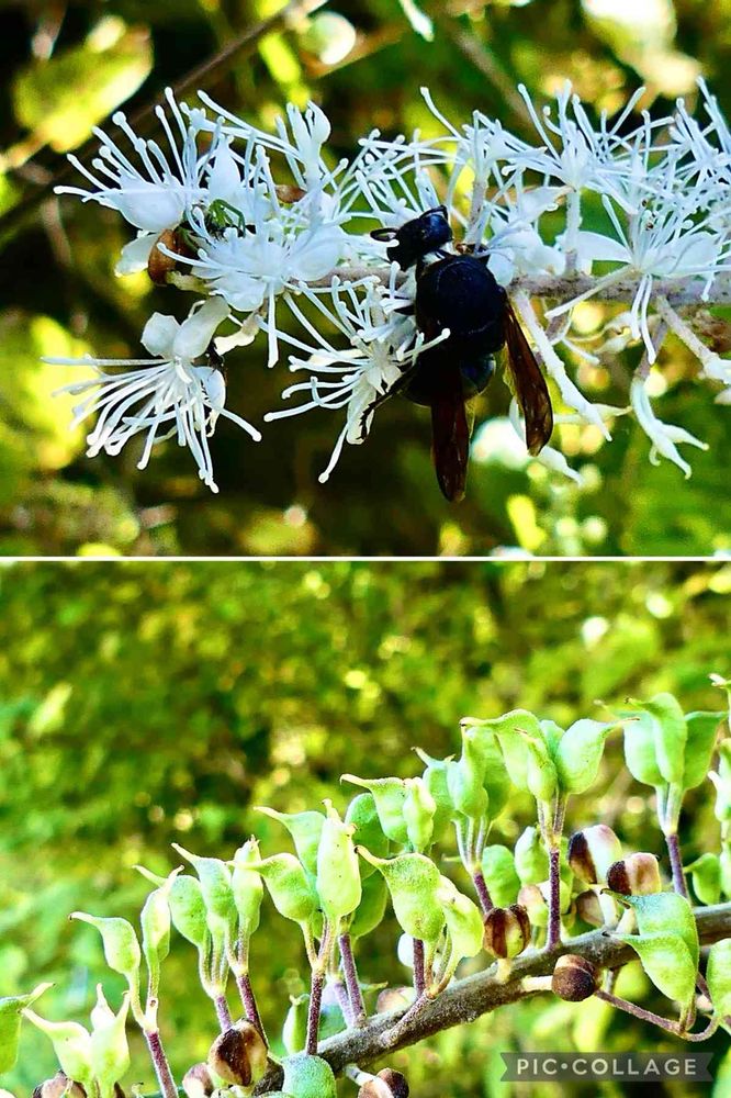 「サラシナショウマ」ももうそろそろ終わりですね、花が減って果実になってるのが多くなってきました、虫さん🐝も必死ですね。