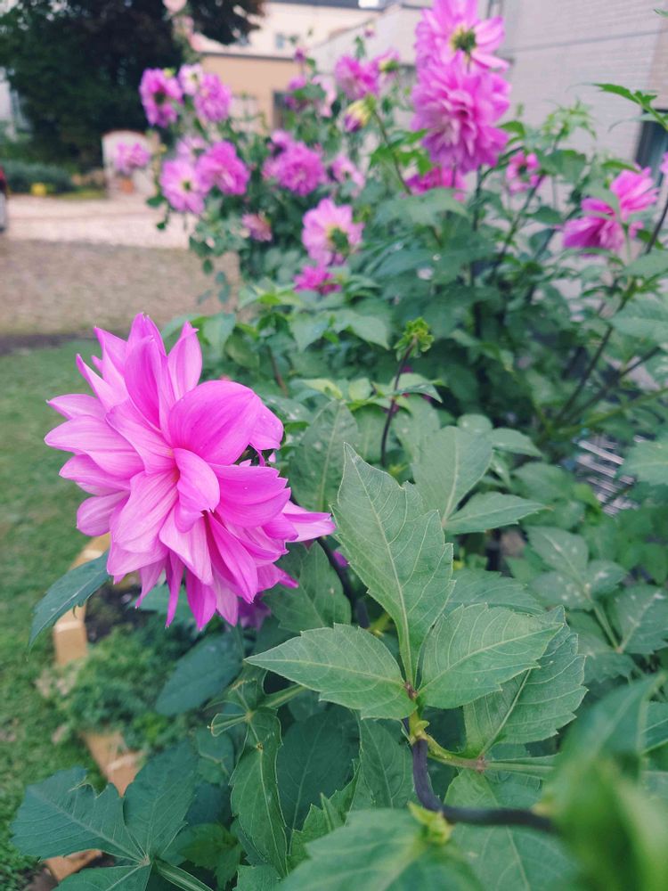 ひええ…!せっかくいっぱい咲いてきたのに…昨日の1日中の風雨でまたも支柱ごとダリアが倒れたぁー(;_;)