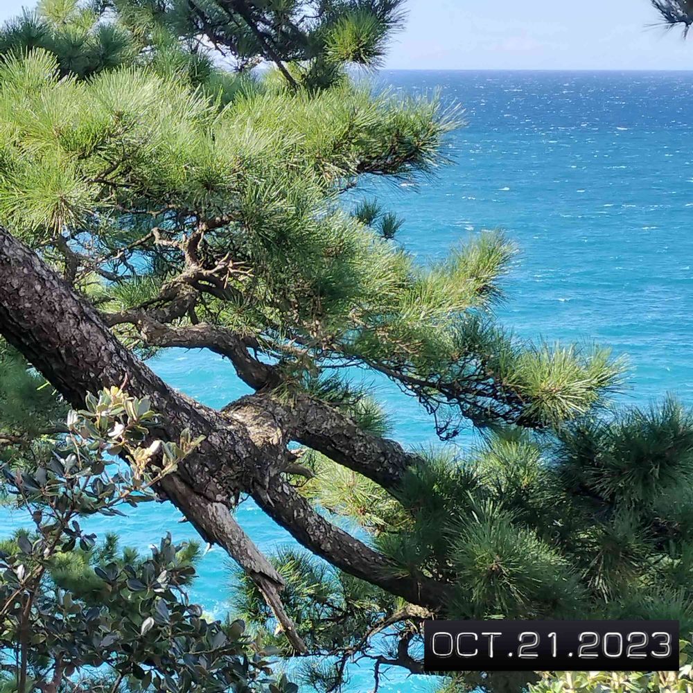 ジムで鍛えてて良かった〜青い海と松✨の景色をシェア🙌😘