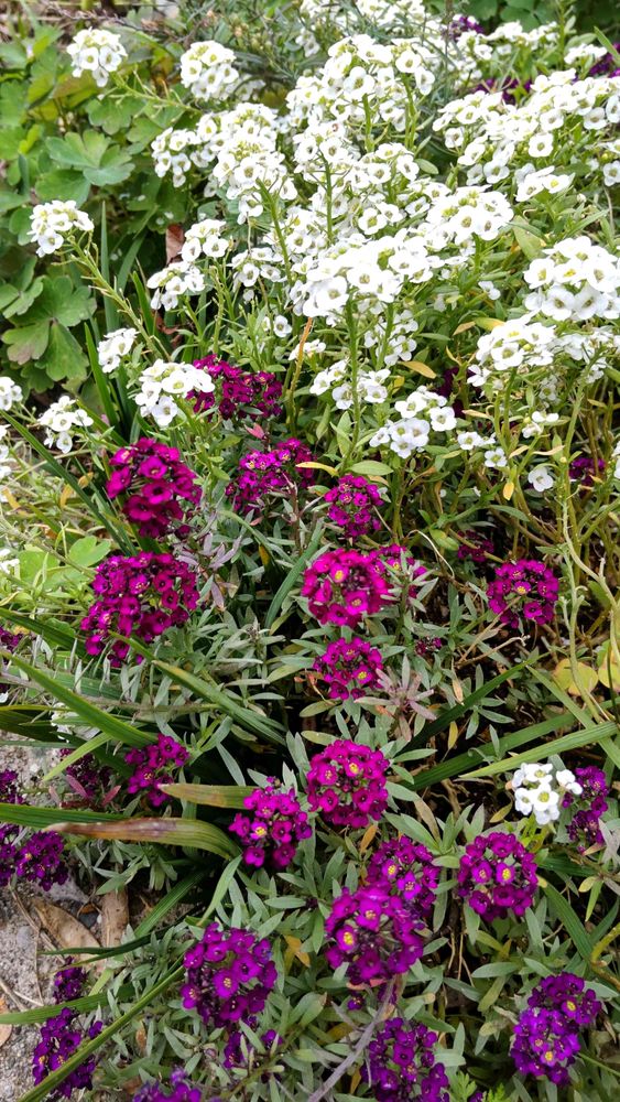 溢れ種から咲いたアリッサム、白と赤紫🤍💜
